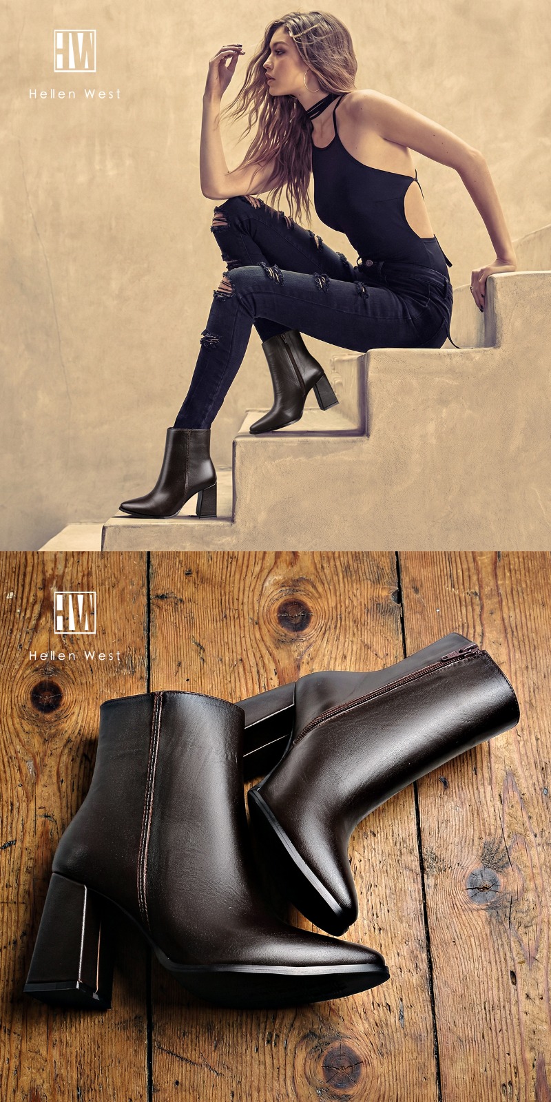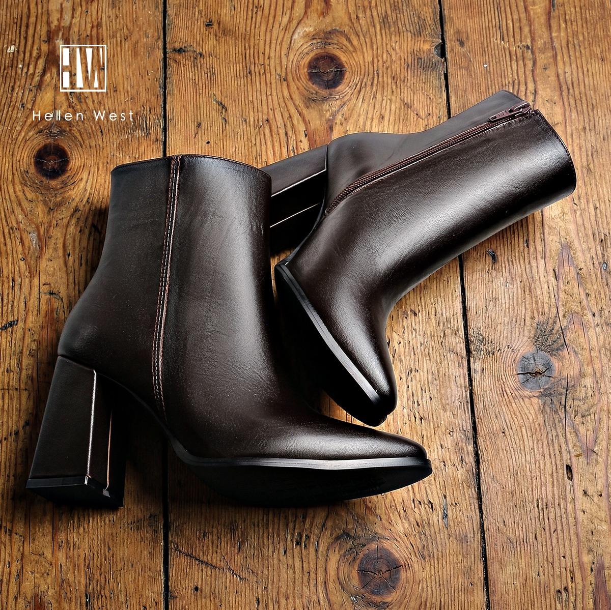 Botines en piel color café.