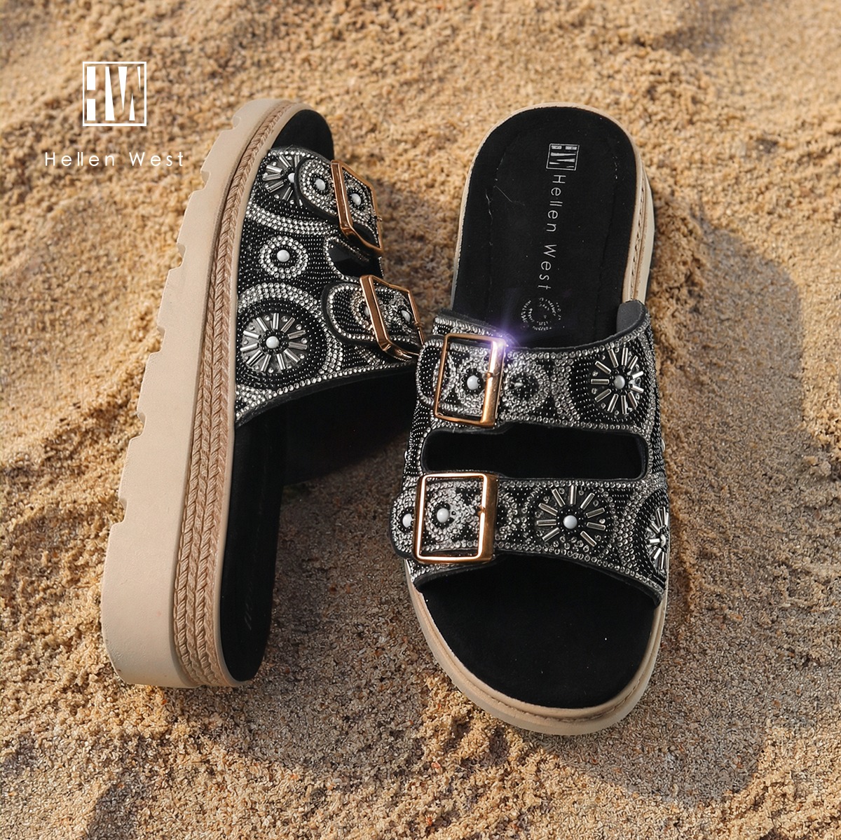 Sandalias con pedrería.